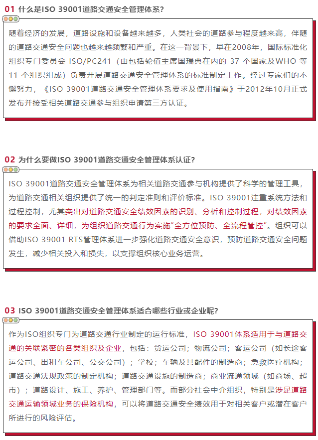在此大背景下,ISO 39001 道路交通安全管理體系也孕育而生,那你是否了解此標準呢?推行此標準又有何益處呢?