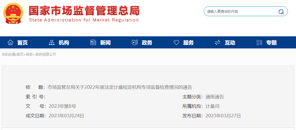 近日,市場監管總局發布關于2022年度法定計量檢定機構專項監督檢查情況的通告,本次檢查的法定計量檢定機構共10家,其中,檢查合格的機構6家,需整改的機構4家。 目前,需整改機構均已完成整改,經驗證滿足整改要求,復核通過。